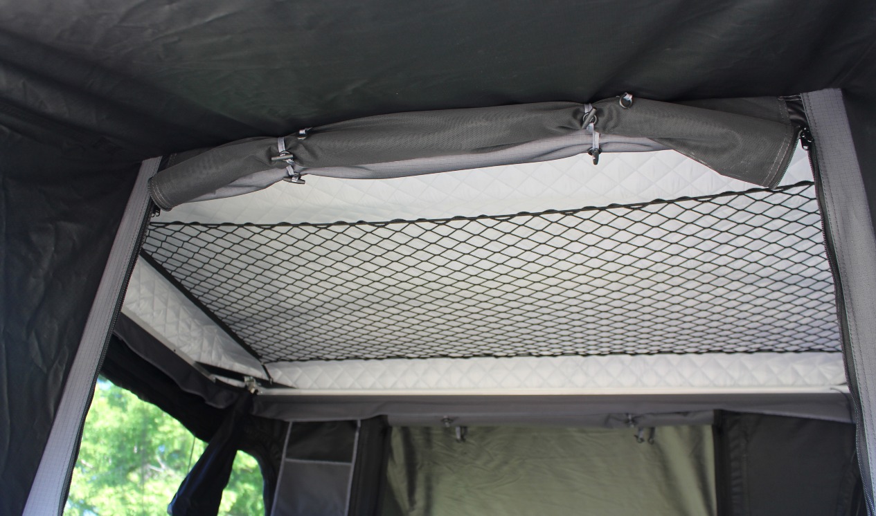 The hydraulic opening system allows you to set up and fold the tent effortlessly in seconds.